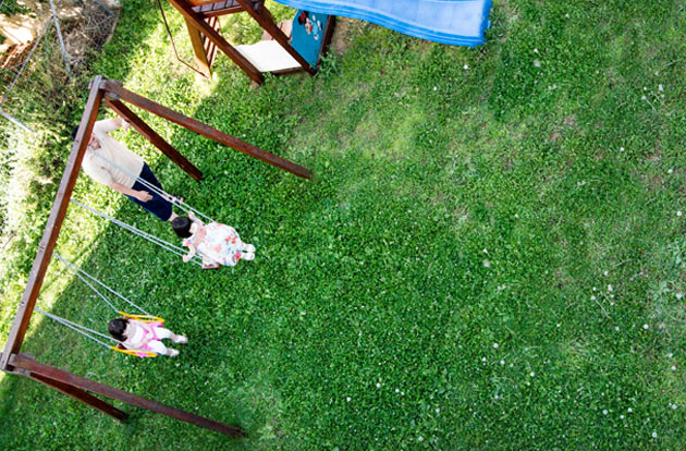 Our buildings are between our 2 gardens. From the one side out garden with orange trees with a small road that leads you direct to the sea in two minutes and from the other side the olive trees garden, with grass, playground and deck chairs.
